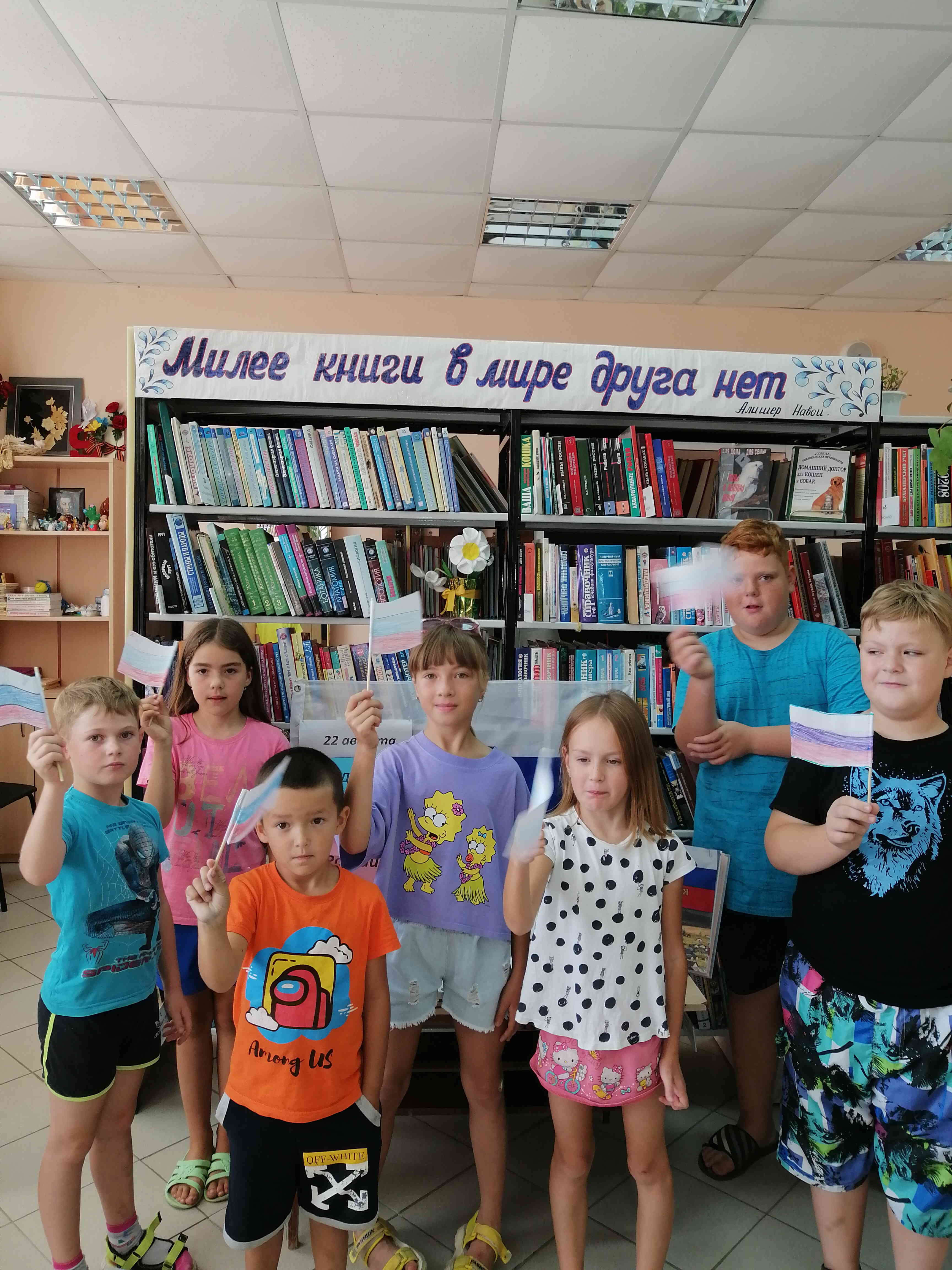 19 августа библиотека № 28 МКУК МЦБС п. Мирный пригласила ребят на познавательную беседу "День флага".