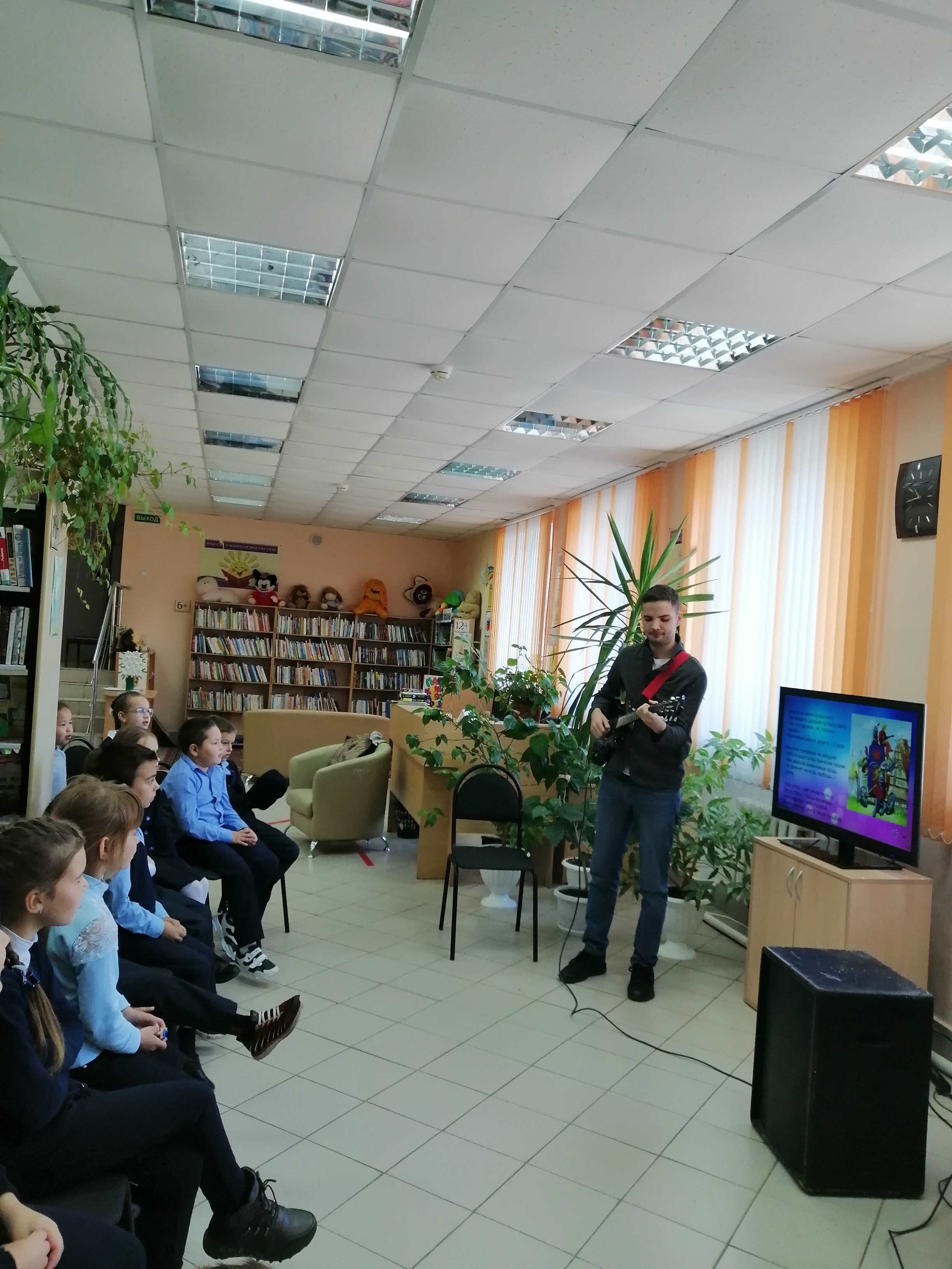 В этот день было много улыбок и хорошего настроения, дети не только весело провели время, но и получили положительный заряд энергии. Ребята совершили веселое музыкальное путешествие, во время которого пели детские песни под гитару, узнали строение электронной гитары, угадывали мелодии по вступлению, сами попробовали играть на музыкальном инструменте. Ребята успешно справились со всеми заданиями!