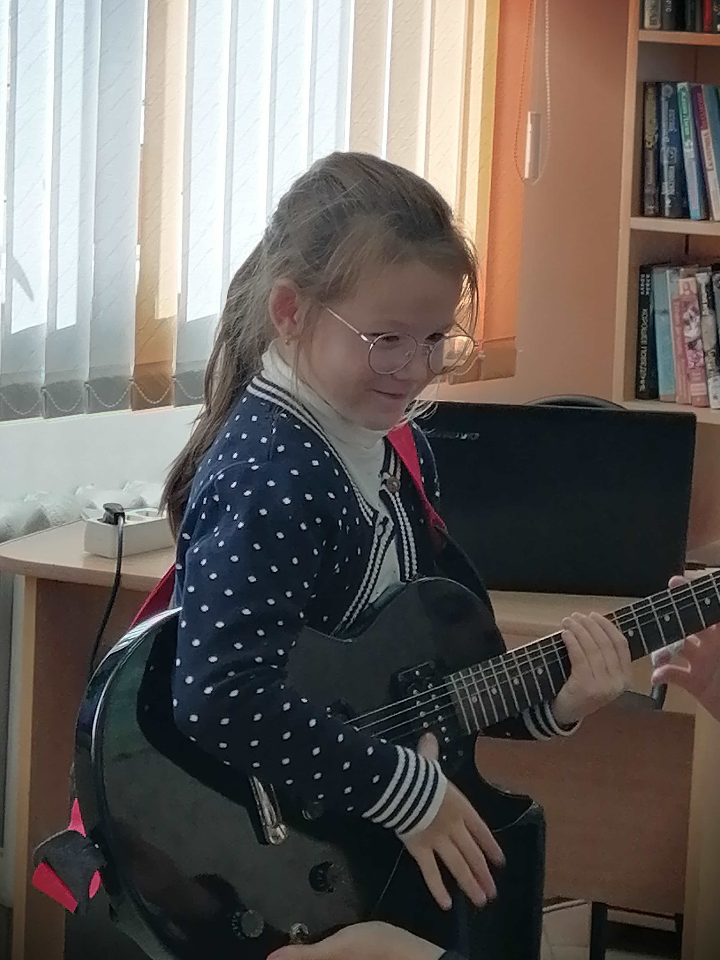 В этот день было много улыбок и хорошего настроения, дети не только весело провели время, но и получили положительный заряд энергии. Ребята совершили веселое музыкальное путешествие, во время которого пели детские песни под гитару, узнали строение электронной гитары, угадывали мелодии по вступлению, сами попробовали играть на музыкальном инструменте. Ребята успешно справились со всеми заданиями!