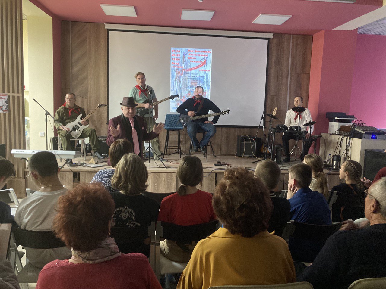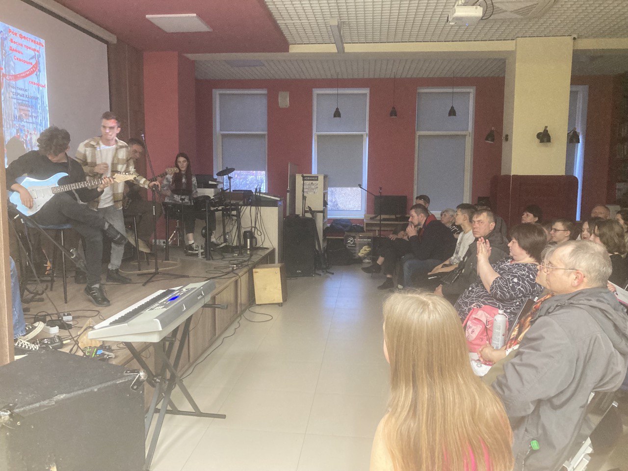Раздвинуть стены камерного библиотечного помещения до максимального пространства удалось музыкантам групп: "Серые камни" из с. Долгодеревенского, "Панама" и "Флюгер" из с. Миасского, исполняющим инструментальные произведения в стиле "рок". Солисты, соответственно, Дмитрий Несмиянов, Анастасия Деева, Олег Шилин.