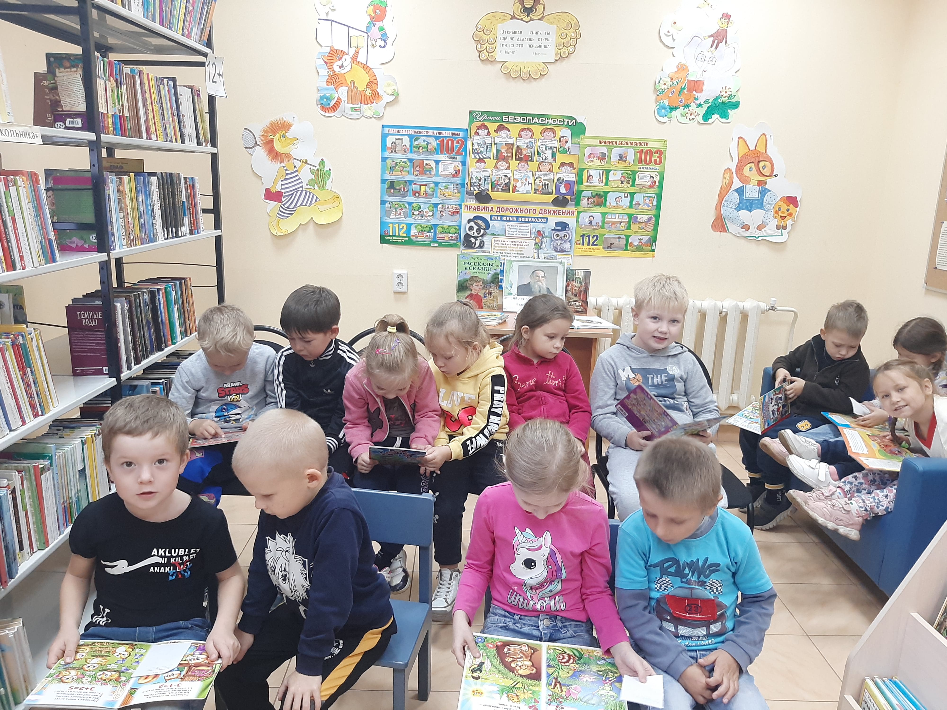 Ребята с удовольствием рассматривали картинки из книг, которые были предоставлены книжной выставки "Детям - Лев Толстой". Библиотекарь прочитала и обсудили с ребятами сказку "Три медведя". Встреча в библиотеке с дошколятами прошла интересно и полезно.