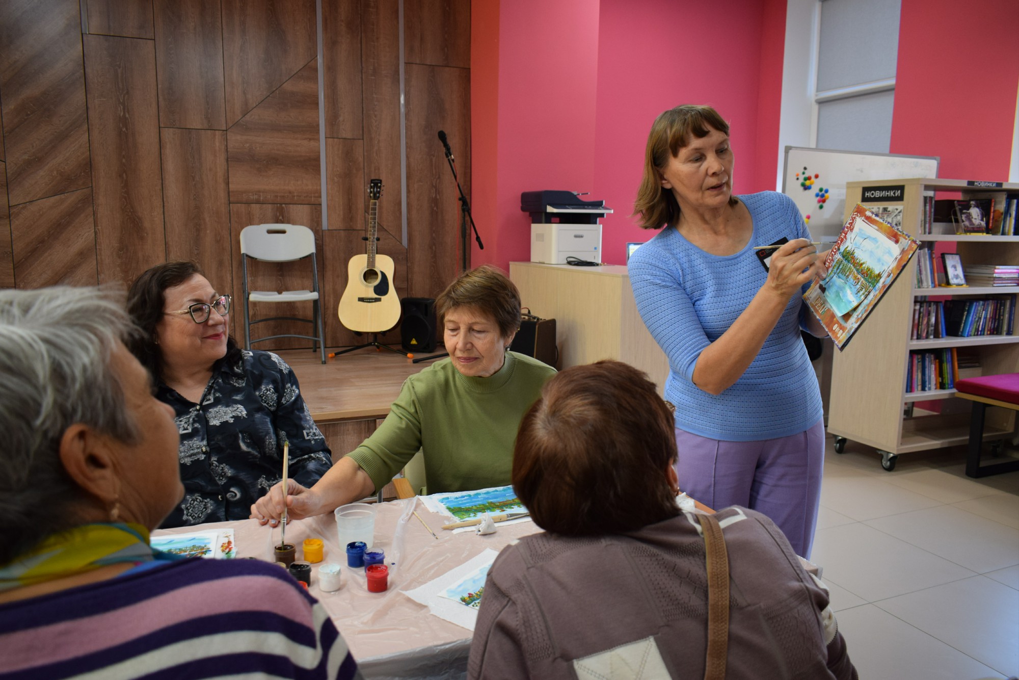 18 октября 2023 года в Центральной библиотеке состоялось занятие по рисованию в правополушарных техниках для возрастной категории 50+ и без навыков рисования.
