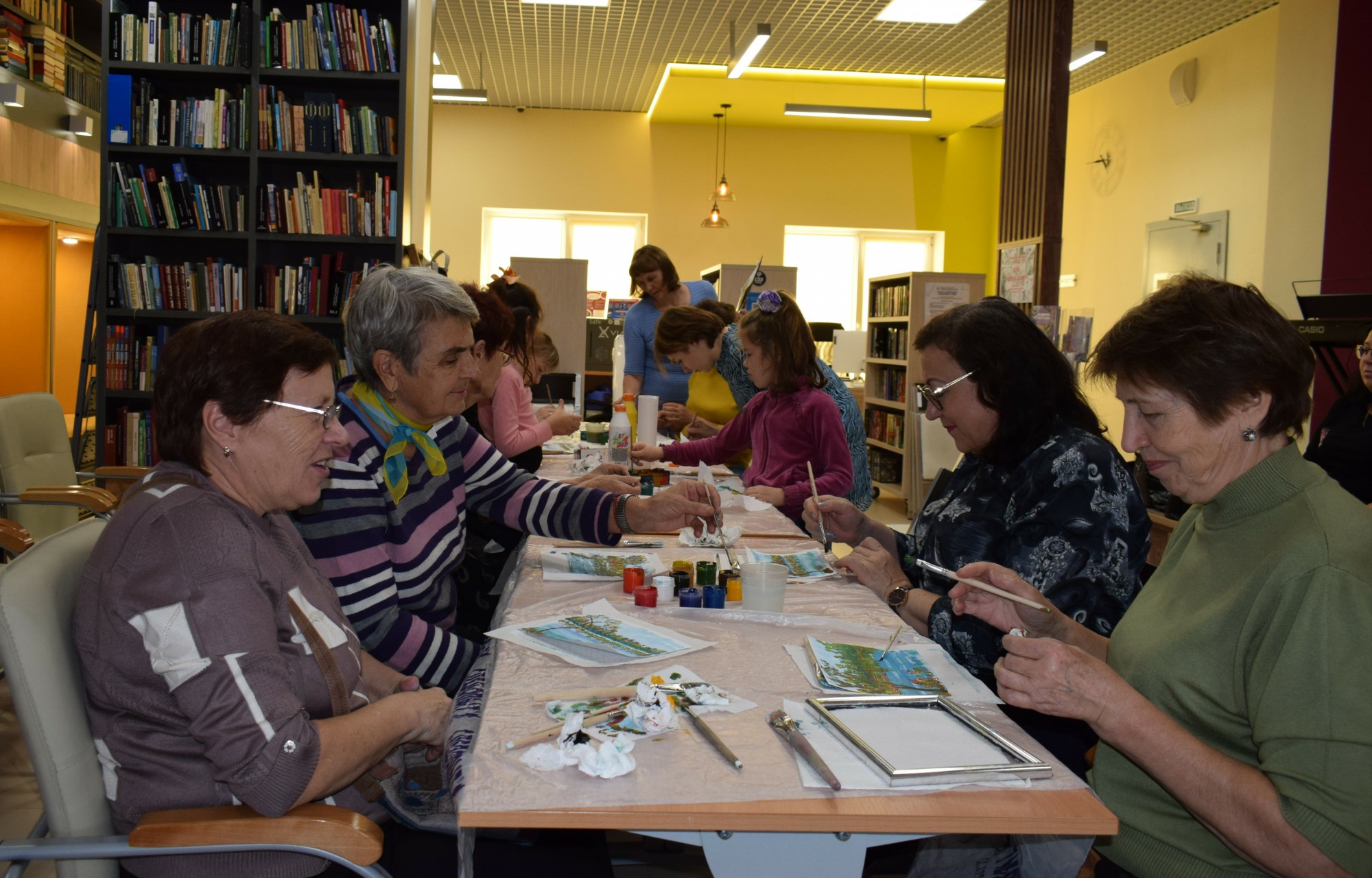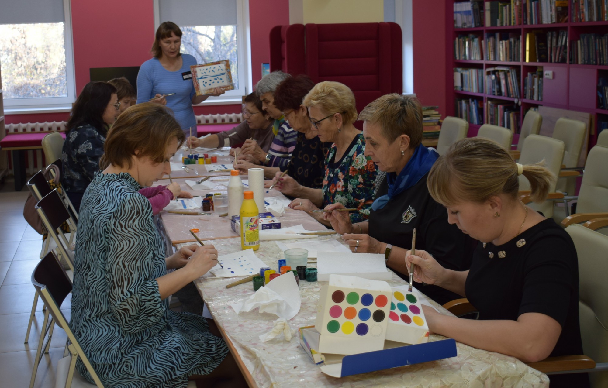 18 октября 2023 года в Центральной библиотеке состоялось занятие по рисованию в правополушарных техниках для возрастной категории 50+ и без навыков рисования.