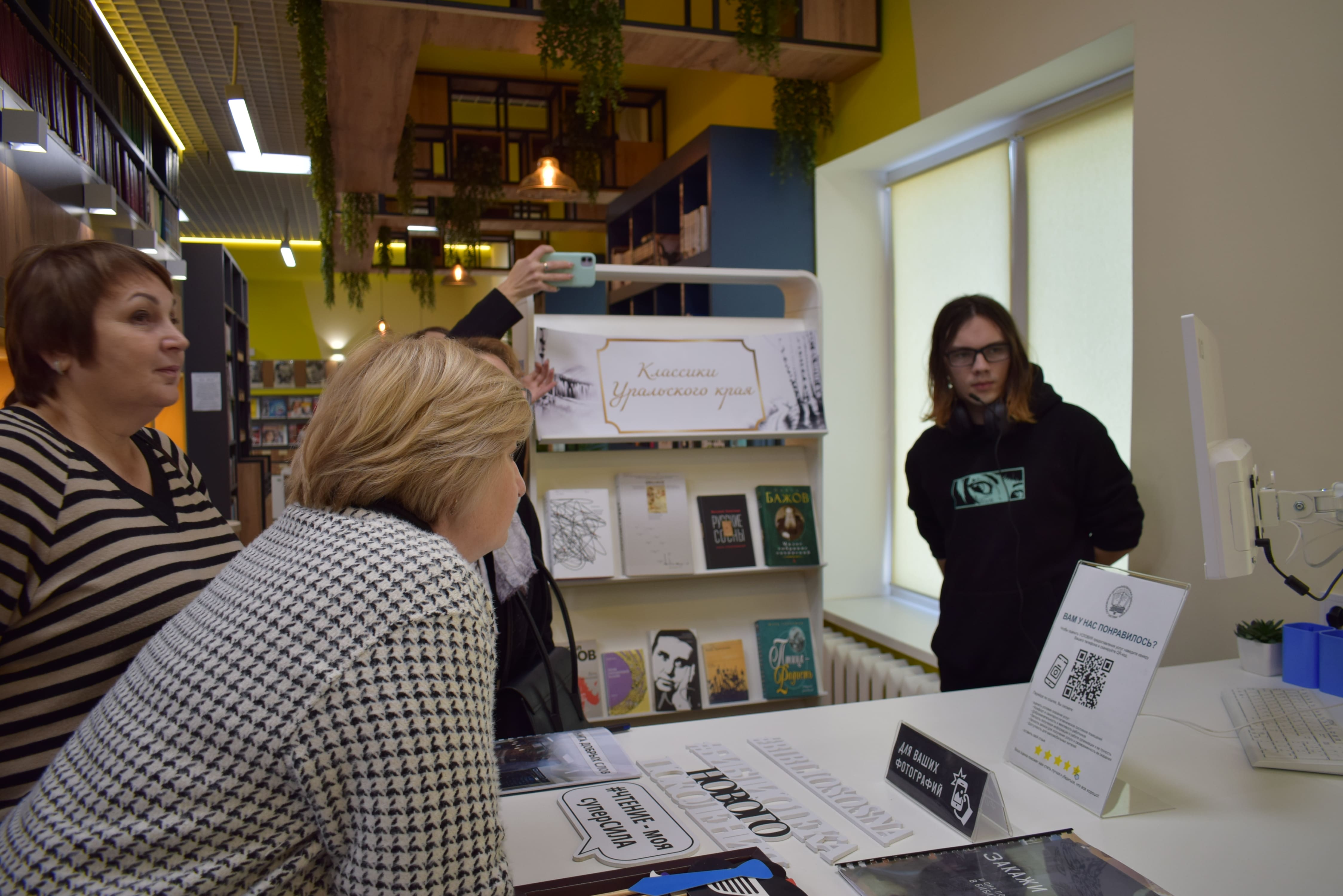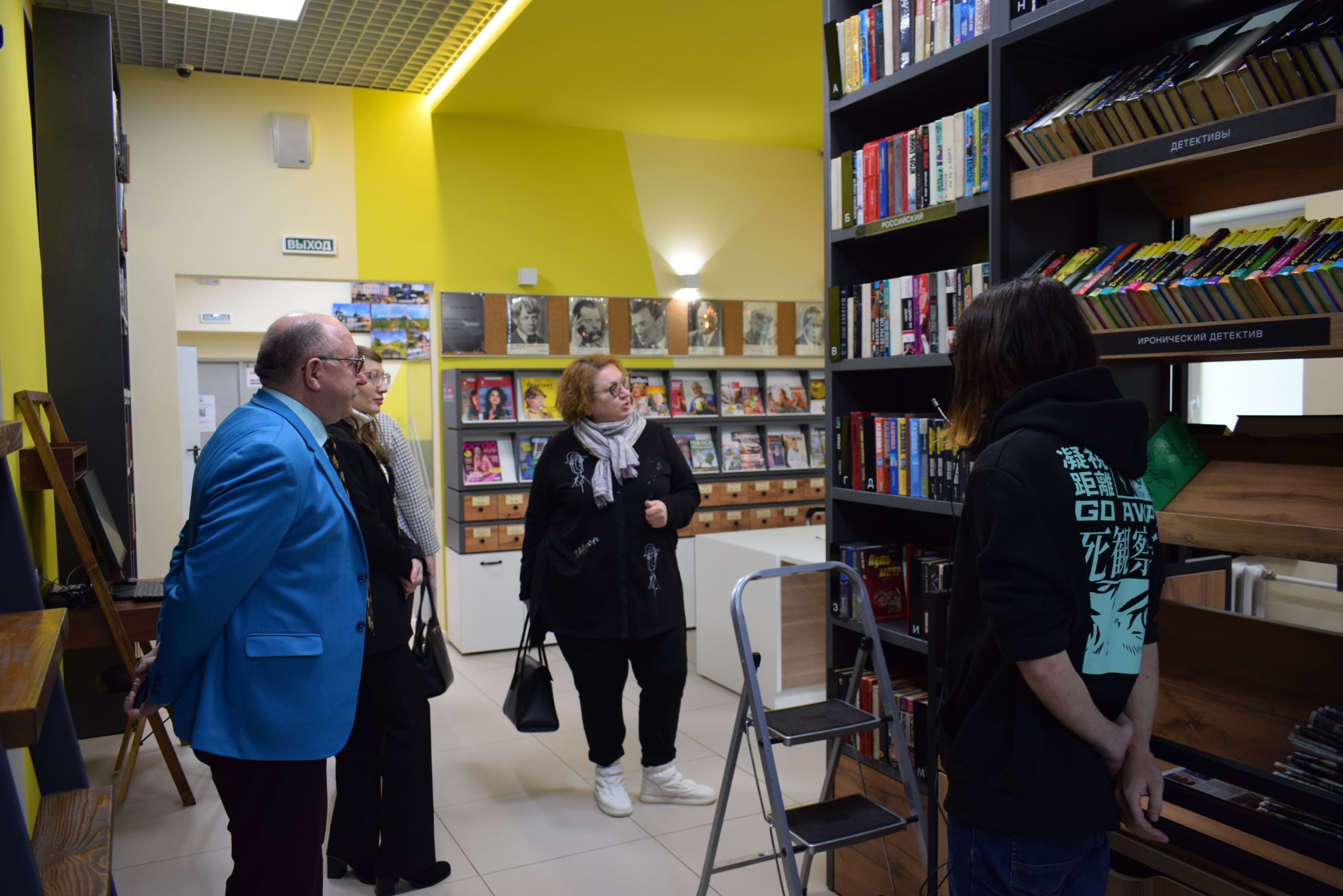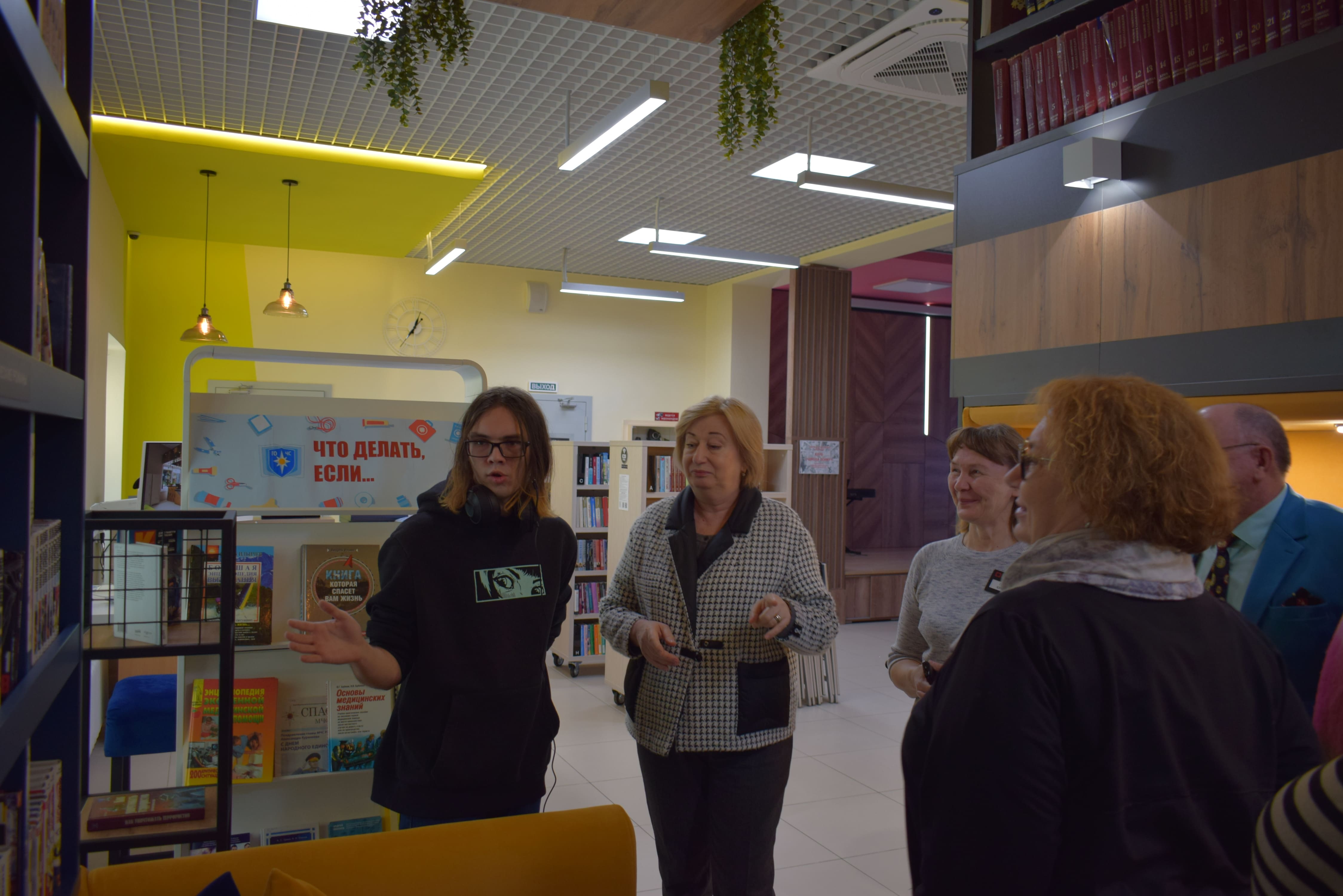 Дальше гости оказались в пространстве Взрослой библиотеки. Они попросили показать то, чего нет в других библиотеках, ведь мало кого удивишь в крупных библиотеках антикражными воротами и станцией самовыдачи.