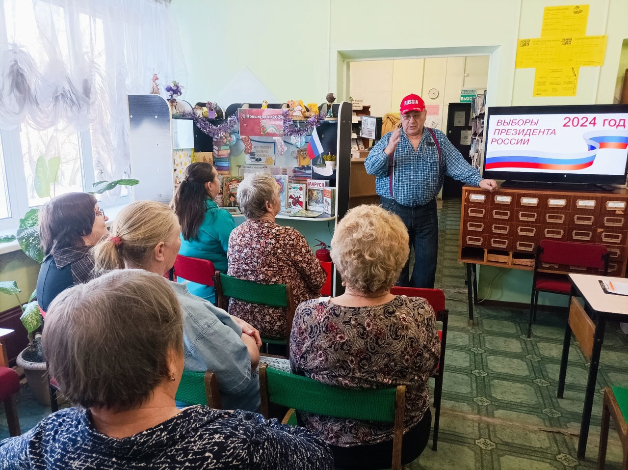 24 января 2024 года в Касаргинской библиотеке прошел час полезной информации "Выборы - наше будущее!" для Ветеранского клуба "Росток".