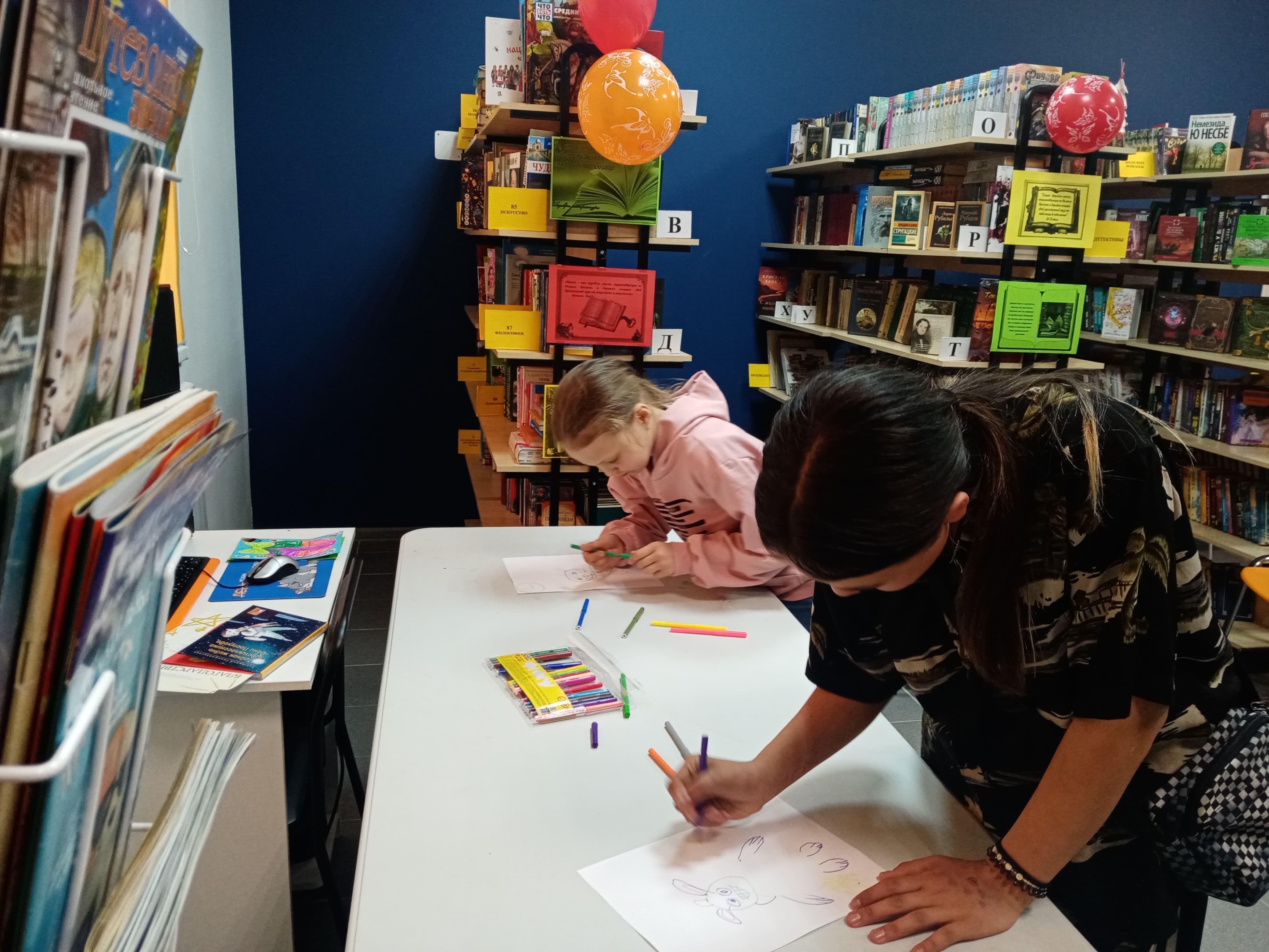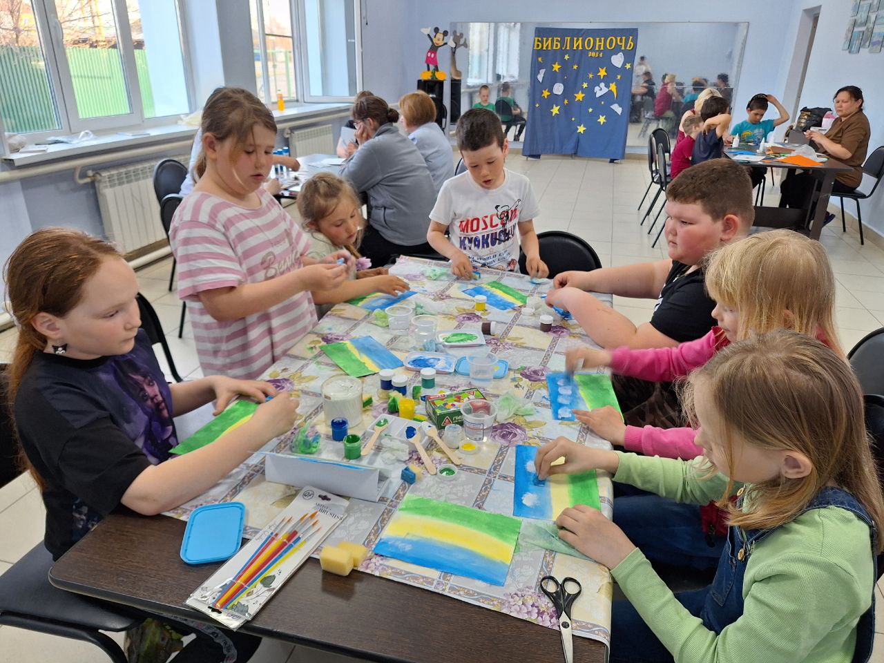 Во второй части Библионочи проходили мастер-классы, посвящённые семье. Юным участникам было предложено изобразить столько цветков, сколько у них братьев и сестёр.