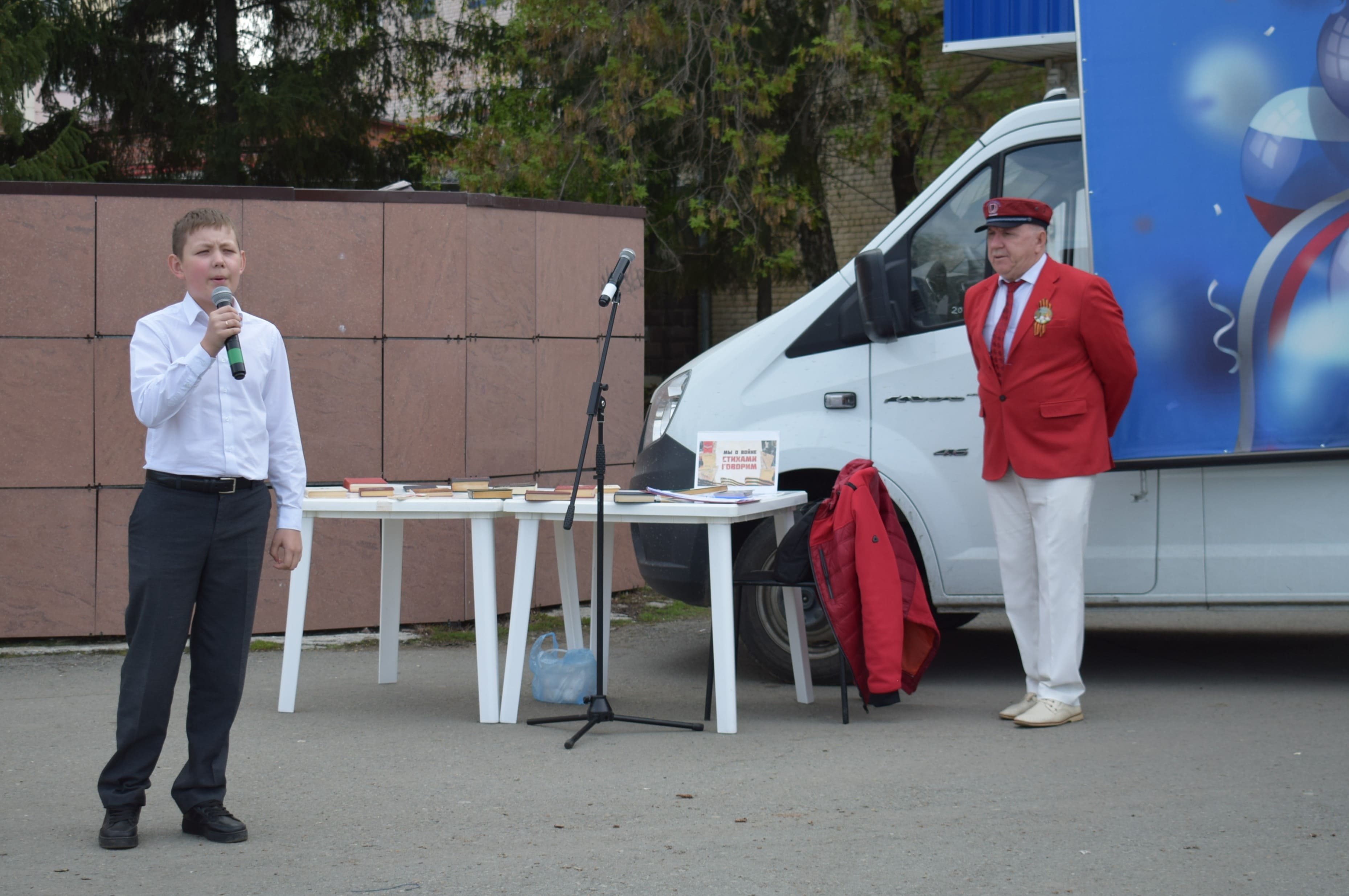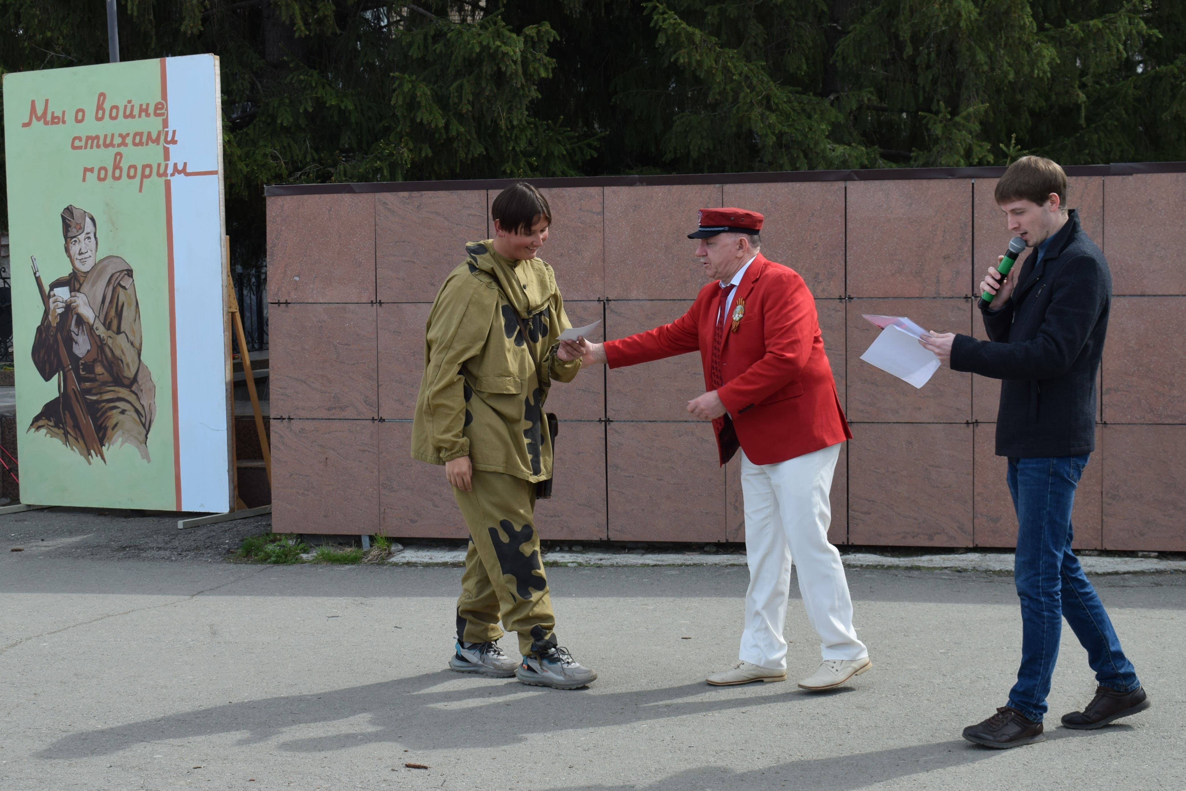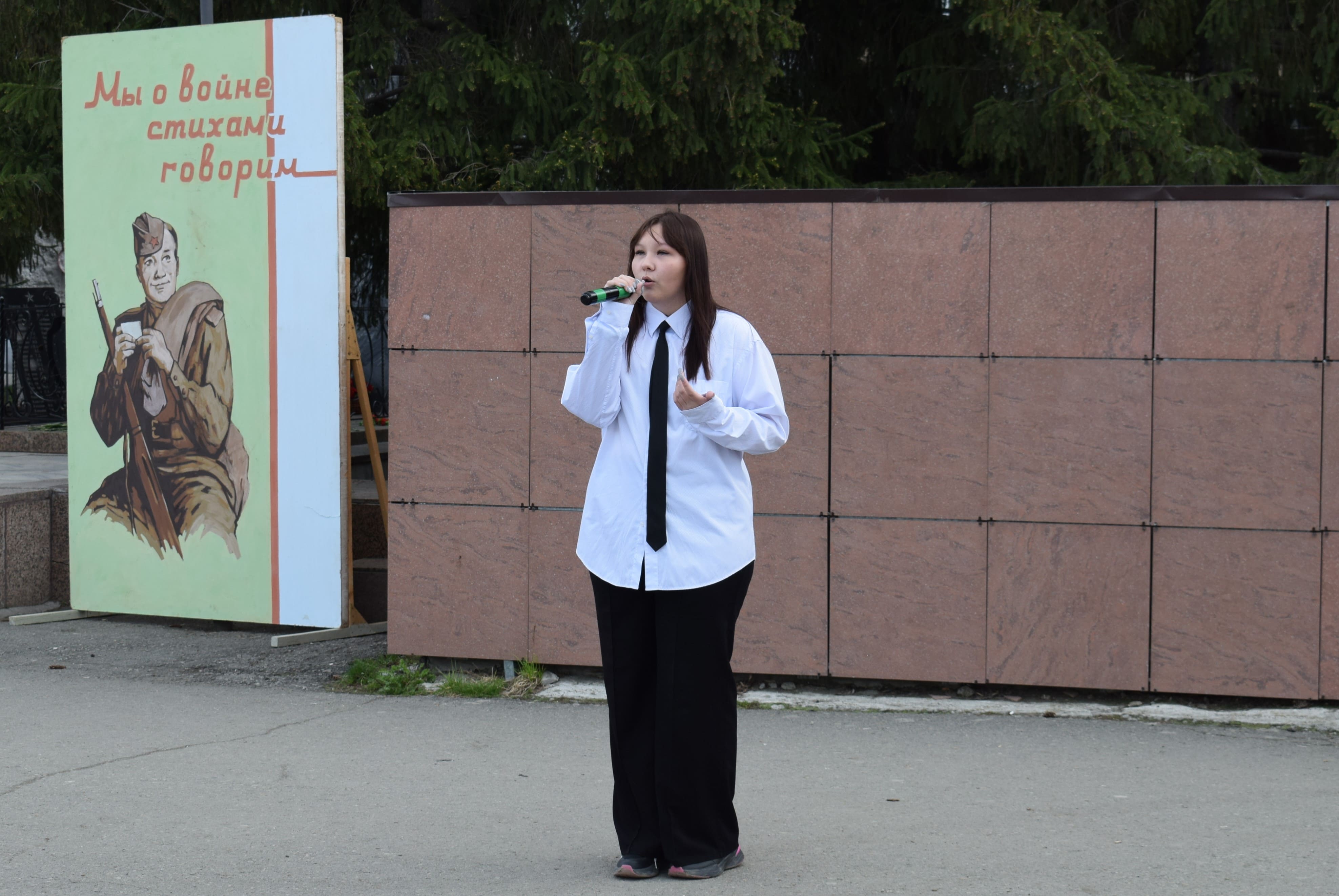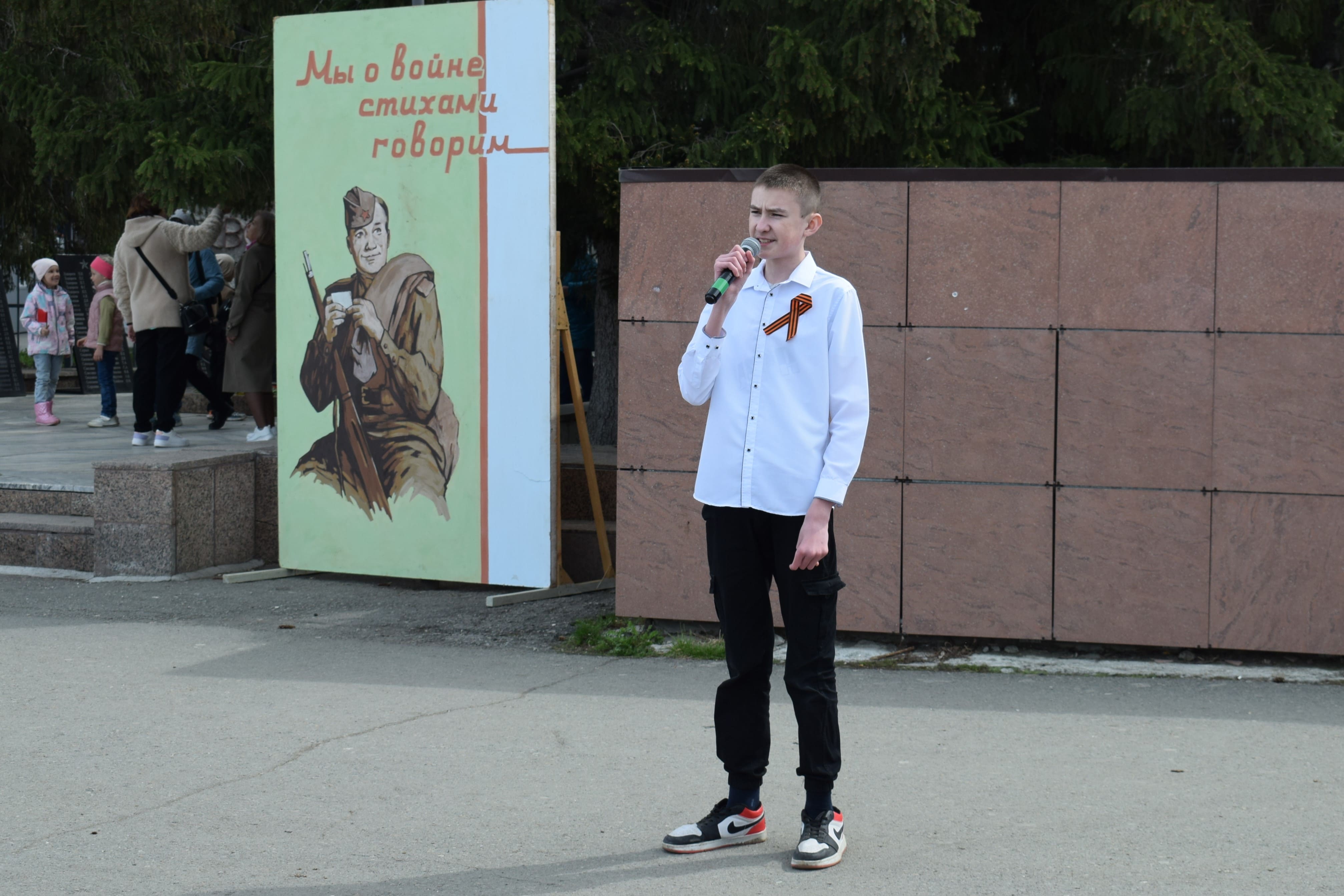 Ведущий мероприятия Сергей Яцук пригласил к микрофону совсем юных чтецов из детского сада №3, учащихся Баландинской и Долгодеревенской школы, а также студентов Аргаяшского аграрного колледжа, которые читали стихи Великой отечественной войне.