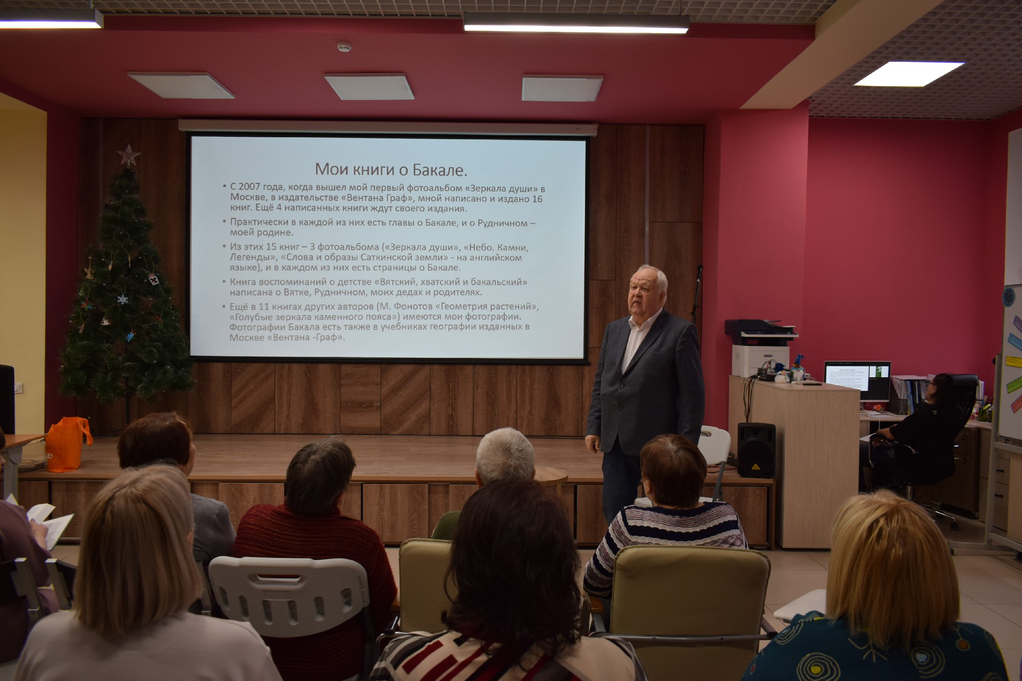 Сценический экран Центральной библиотеки Сосновского района светился лаконичными титрами: "В. В. Садырин. Книги". Здесь проходило мероприятие в рамках проекта "Встреча с интересными людьми – нашими земляками".