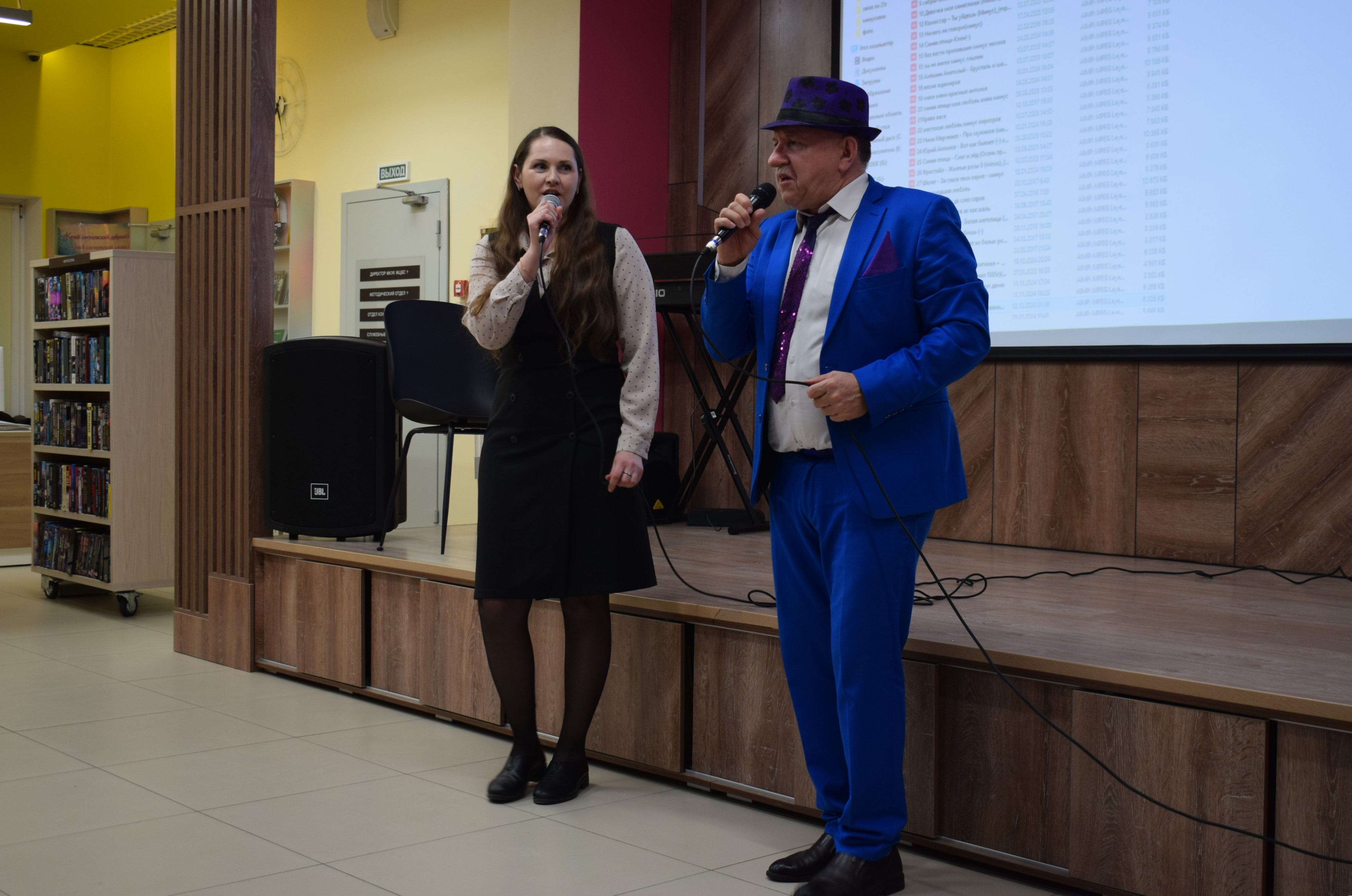 В этот вечер библиотечный экран светился кадрами и композициями документальных и художественных фильмов, фотоснимков. С него смотрели в зал любимые артисты старых кинолент, а из динамиков лились песни, навеянные авторам их героическим временем и осязаемых ими событий. Песни-баллады, песни-повествования, исполненные не поставленными технично голосами, а голосами, наполненными душевностью, искренностью, прочувственными и пережитыми испытаниями.