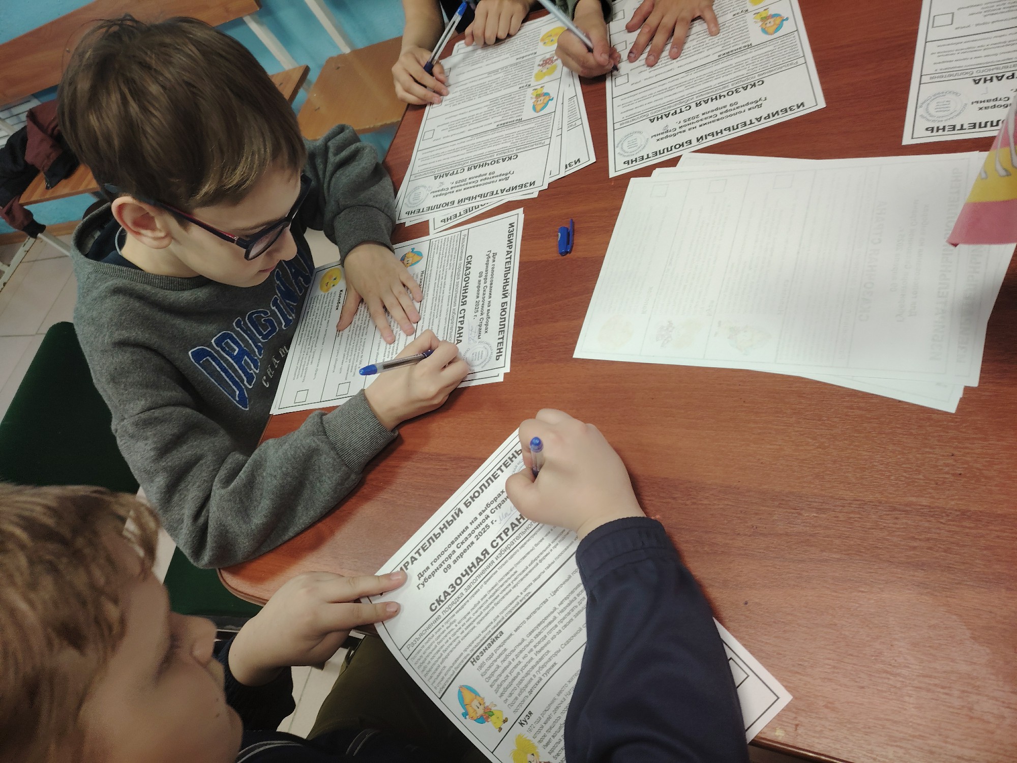 Провели выборы со сказочными бюллетенями, протоколами и списками избирателей. Ребята примерили на себя роль как членов участковой комиссии, так и избирателей. Они учились правильно заполнять бюллетени, обеспечивать тайну голосования и подсчитывать голоса. Сделав свой выбор, подвели итоги голосования, узнали, кто из кандидатов победил на выборах, и обсудили результаты.