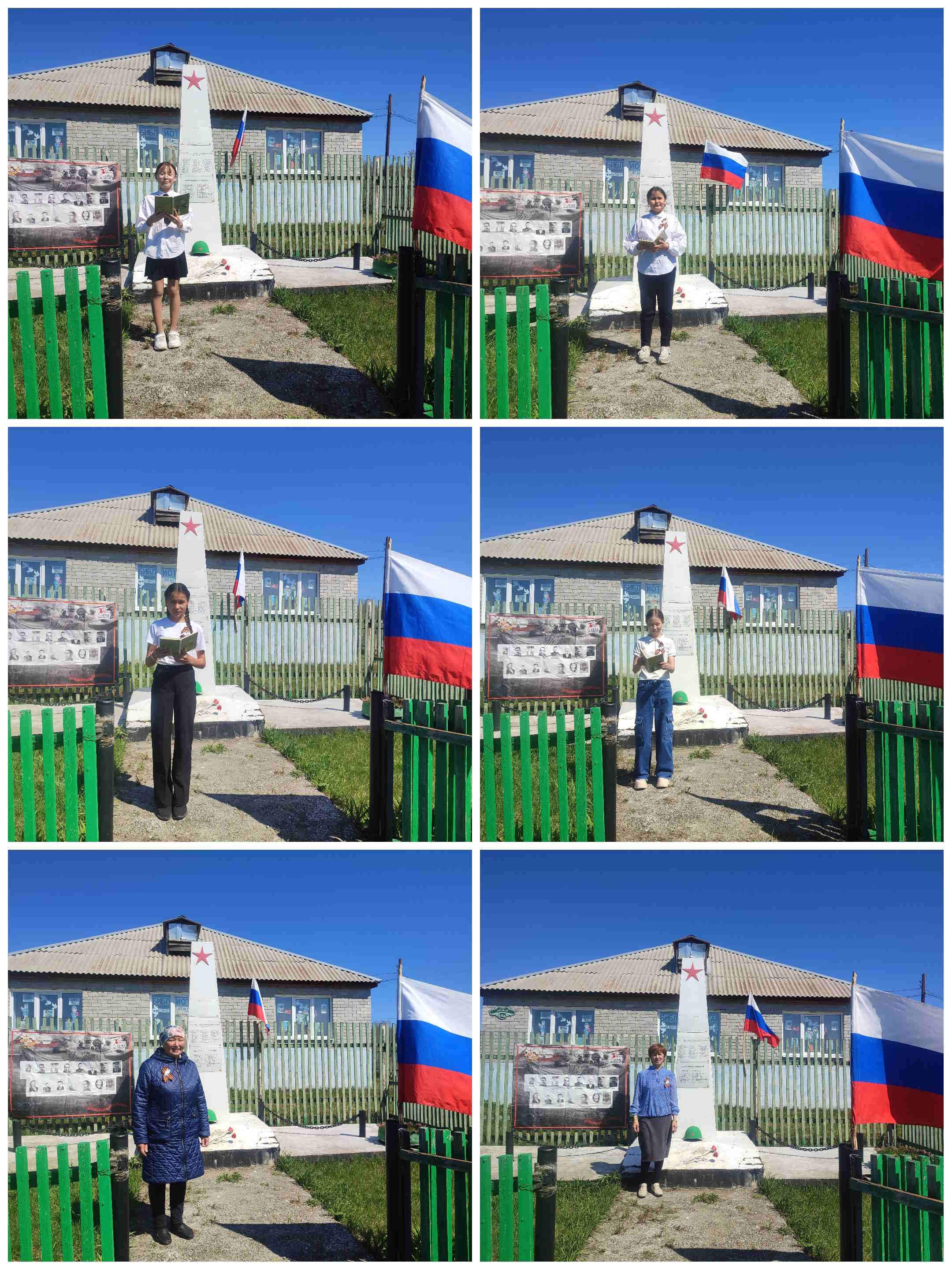 Акция «Мы о войне стихами говорим» посвящена памяти героев Великой Отечественной войны 1941-1945 годов и направлена на сохранение традиции чествования солдат России, отдававших свой воинский и гражданский долг при защите своей родины, своего народа. Солнечная не дождливая погода позволила рассказать стихи на улице возле обелиска. Все желающие прочитали, рассказали пронзительные, трагические стихи о войне. Много о страшных военных годах мы можем узнать именно из стихотворных произведений, читая которые мы переживаем вместе с их героями. В акции приняло 10 читателей.