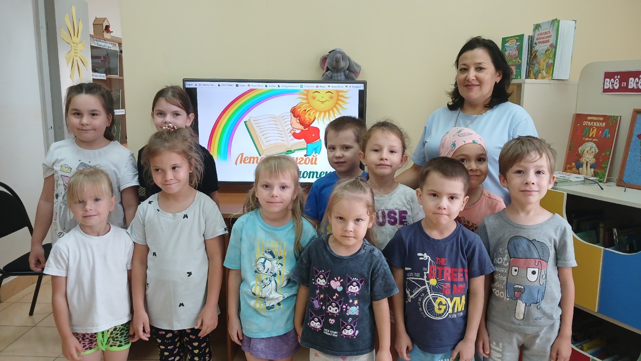 11 августа в Солнечной библиотеке прошло увлекательное мероприятие для детей под названием "Лето с книгой и библиотекой". На это событие были приглашены воспитанники детского сада "Солнышко".