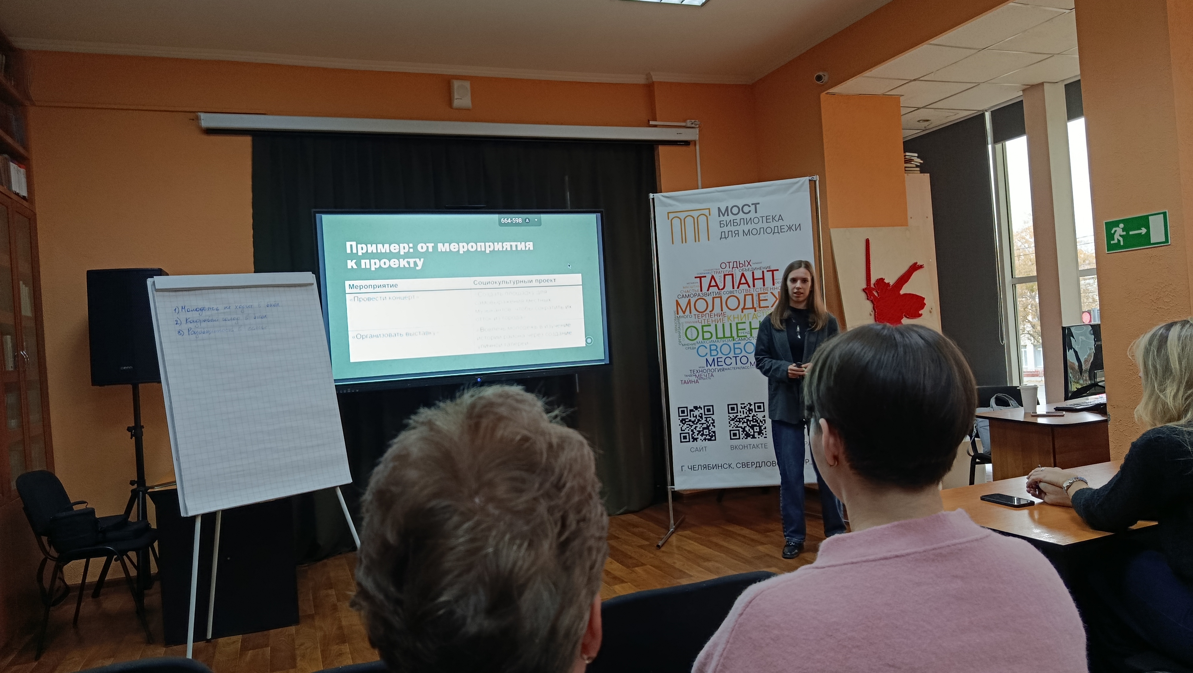 13, 14 и 15 октября библиотекарь п. Полетаево Валерия Чевтаева посетила интенсив по социокультурному проектированию от Челябинской областной библиотеки для молодежи/