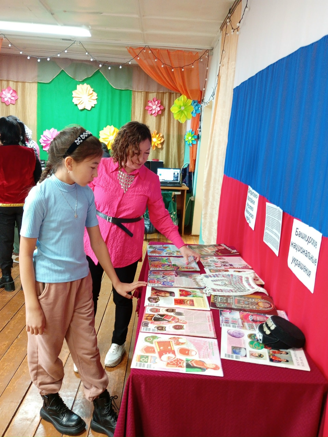 На выставке представлены журналы «Башкортостан кызы», где есть описание про национальный костюм и культуру башкир, в журнале можно найти информацию о традиционных украшениях, таких как кашмау – головной убор башкирских женщин, нагрудниках и многих других. Выставка служит для знакомства с богатым культурным наследием башкирского народа, демонстрации уникальных традиций и мастерства, а также для сохранения и популяризации декоративно-прикладного искусства.