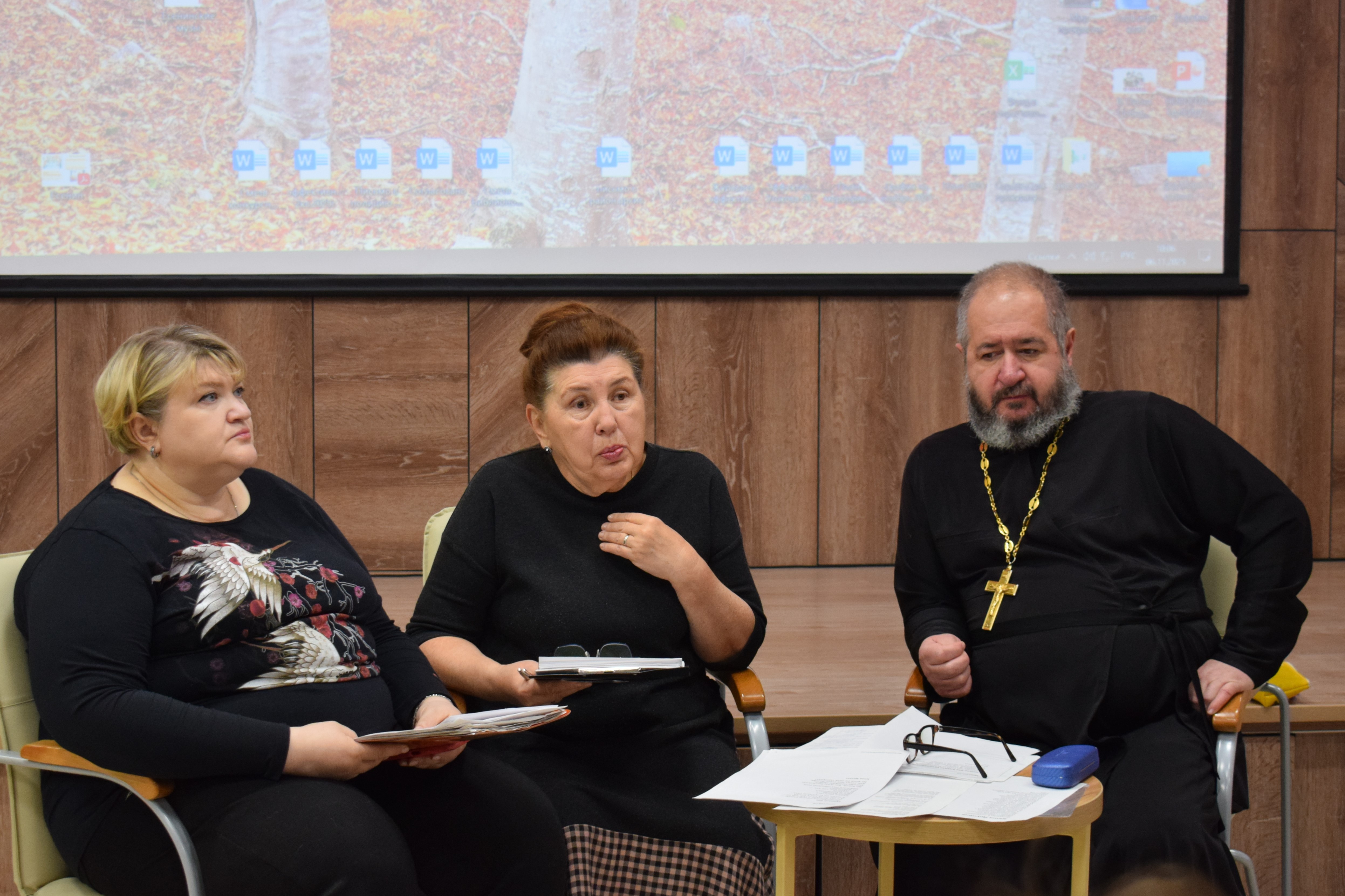 6 ноября на ежемесячном методическом семинаре библиотекари района встретились с протоиреем Юрием Грантовичем Артарьяном и психологами Свято-Троицкого храма с. Долгодеревенского Челябинской епархии РПЦ.