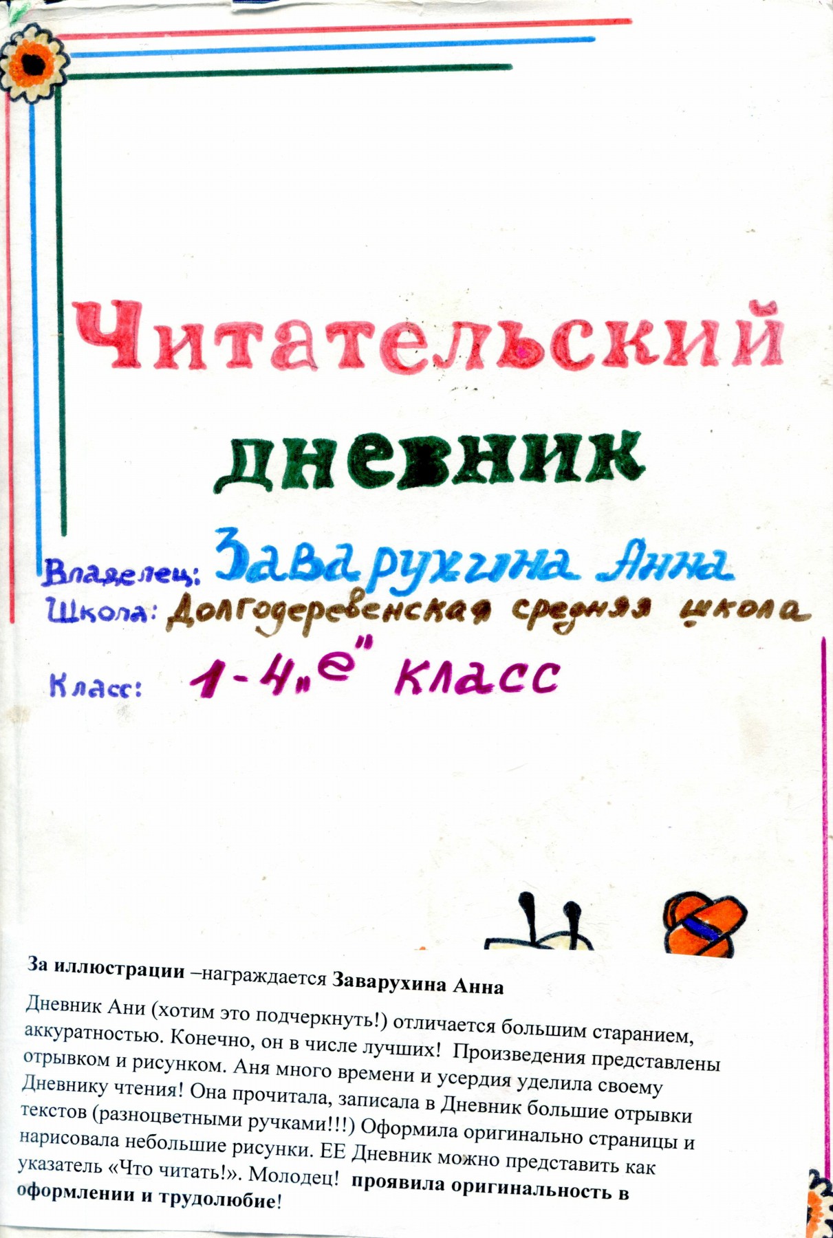 Представляем лучшие дневники чтения учащихся Долгодеревенской СОШ