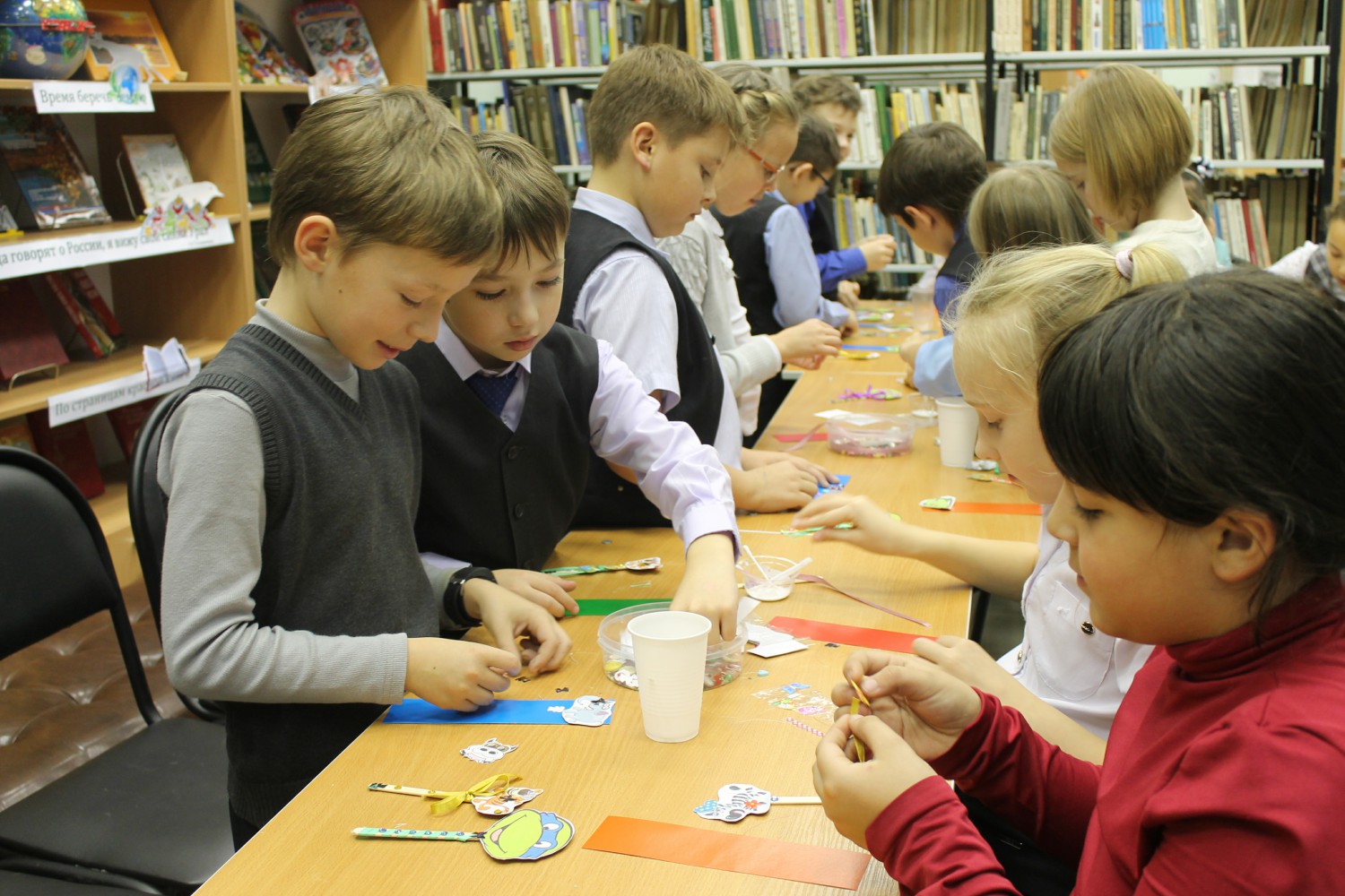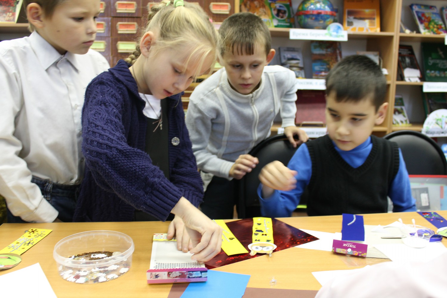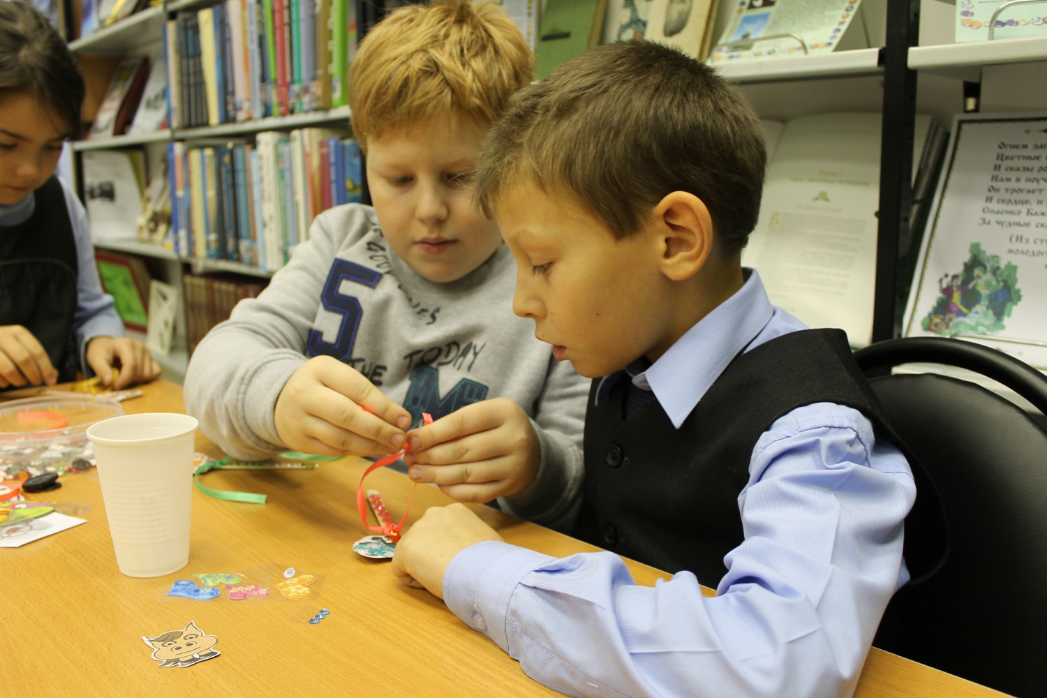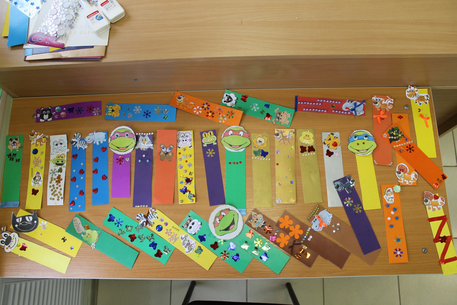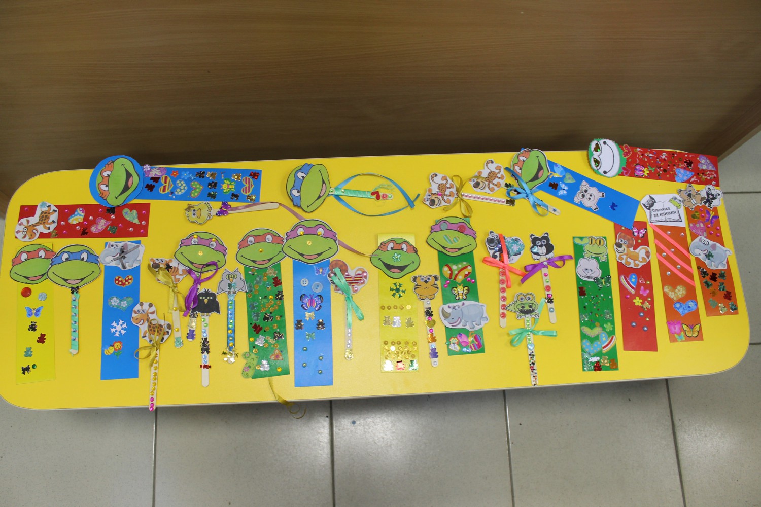 Используя картон, палочки для мороженого, пластмассовые украшения, школьники сделали закладки для книг в виде забавных животных. Мастер-классы провели Денчук Кристина Вячеславовна и библиотекарь читального зала Саламатина Татьяна Николаевна.