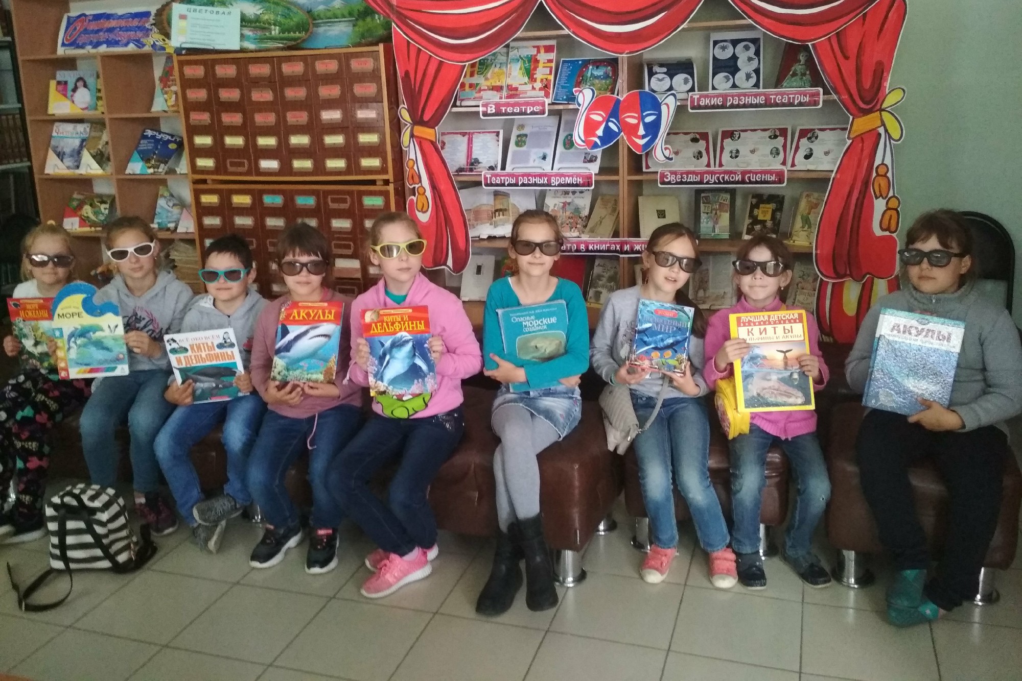 Библиотекарь Татьяна Саламатина рассказала об обитателях морей и океанов. Ребята узнали о том, как называются этажи подводного царства (донное сообщество, сообщество толщи воды и сообщество поверхности воды) и какие морские жители обитают на каждом «морском этаже».