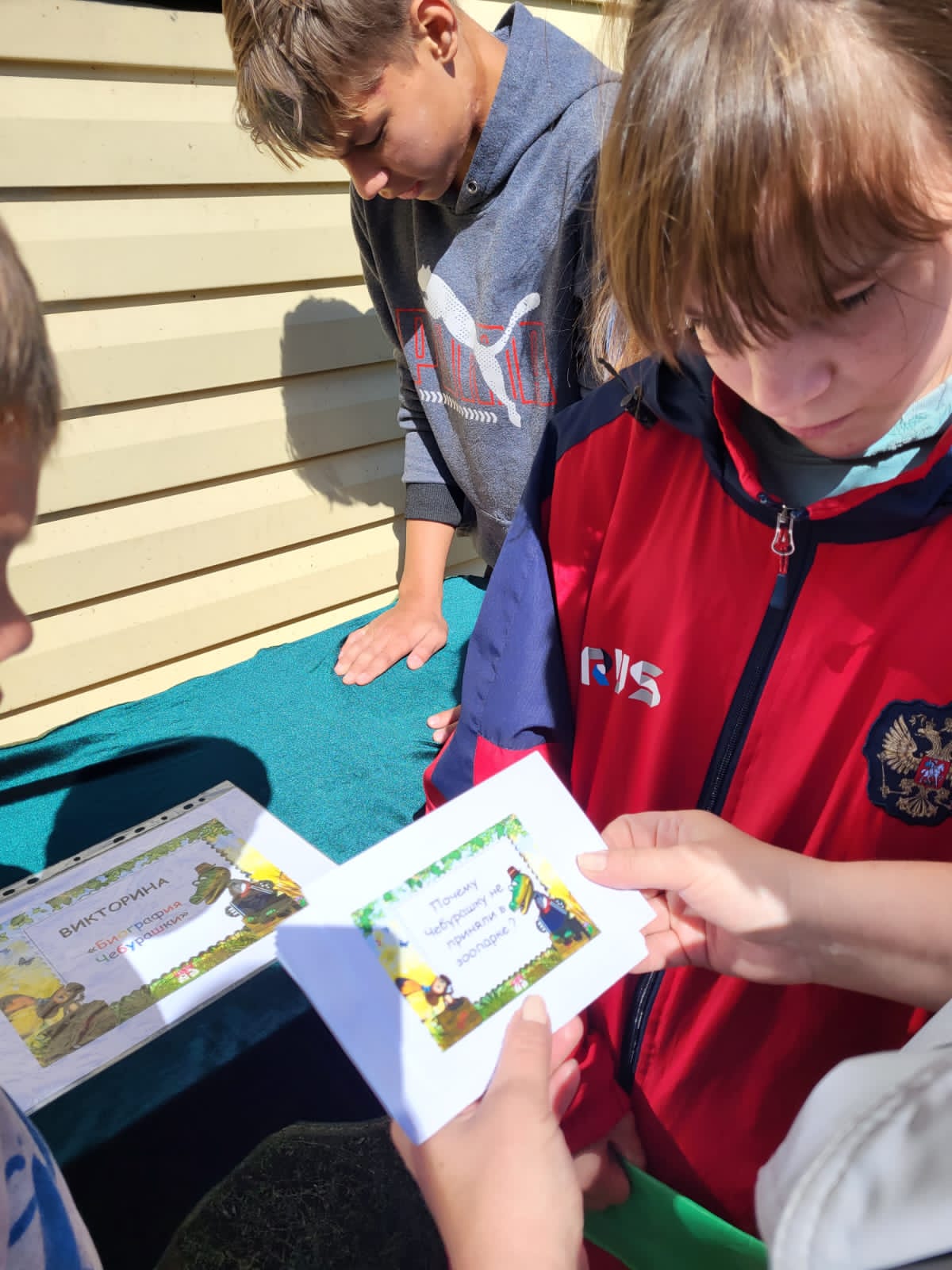 Библиоквест "В гостях у Чебурашкиного папы" – что это такое? Это сундук с волшебным и очень нужным словом, слово хранит всеми любимый Чебурашка. Для того чтобы открыть сундук, нужно пройти 5 станции: "Узнай название произведения", "Вспомни как звали?", "Каникулы в Простоквашино", "Биография Чебурашки", "Веселые старты". За каждую пройденную станцию, команда получает заветный ключ, но только одним из них можно открыть сундук, составить волшебное слово и получить подарки.