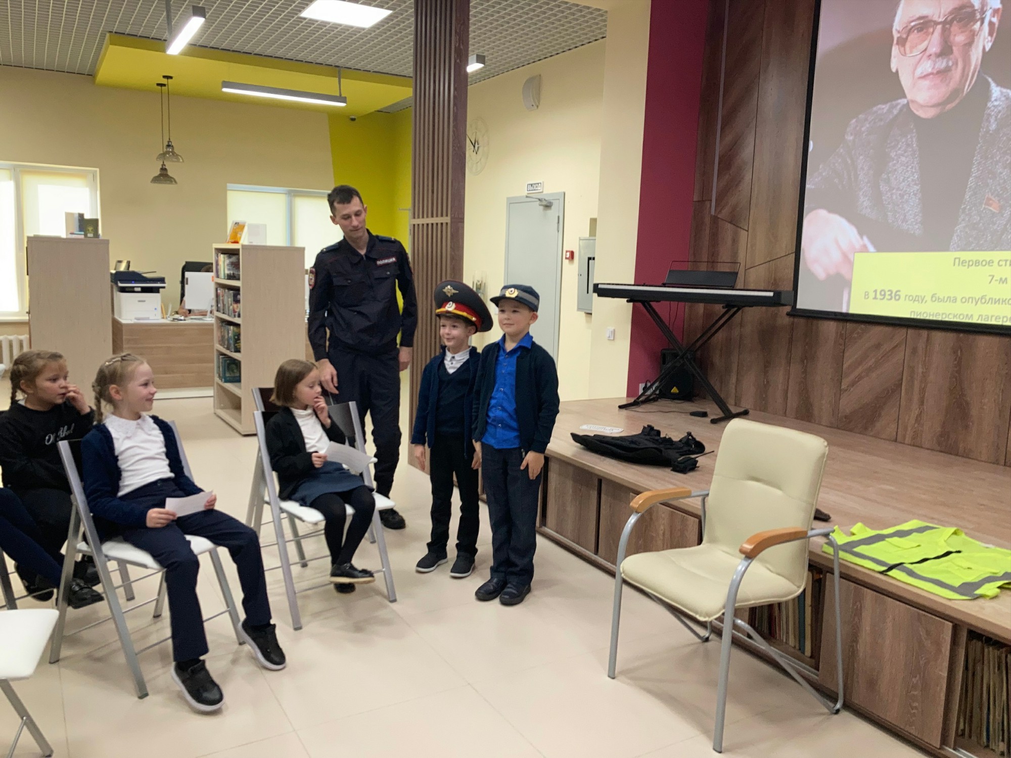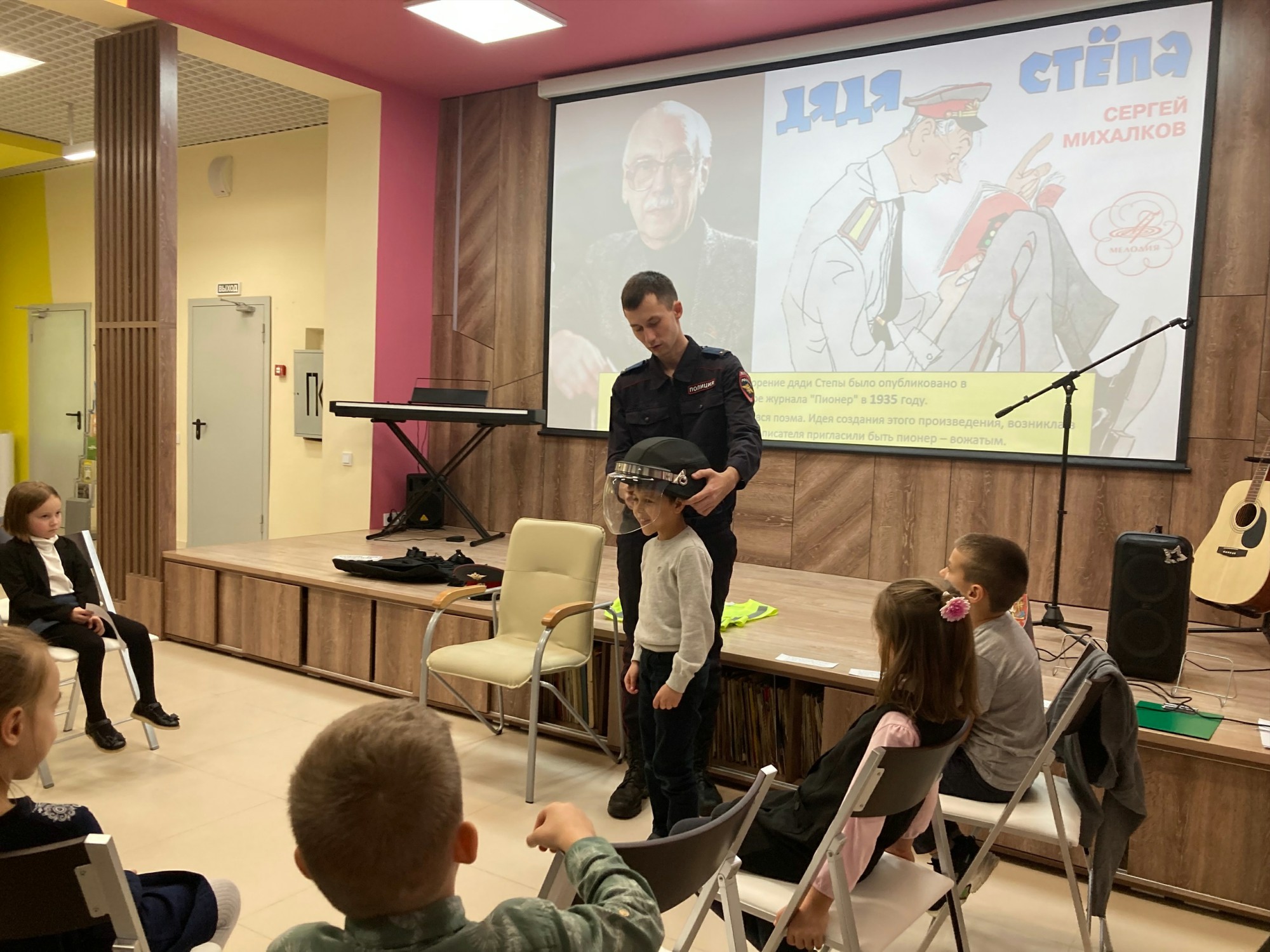 21 ноября для первоклашек Долгодеревенской школы состоялось мероприятие, в котором объединили творчество писателя – юбиляра Сергея Михалкова (170 лет со дня рождения) со знакомством с главными защитниками прав граждан Российской Федерации – полицейскими. Ребята предварительно прочли поэму "Дядя Степа", а в библиотеке встретились с современным полицейским – лейтенантом полиции, инспектором по делам несовершеннолетних Максимом Черепановым. Максим Юрьевич рассказал ребятам, о своей любимой профессии, ответил на все их вопросы, рассказал об инструментах полицейского, необходимых в работе. Все желающие примерили бронежилет, шлем, подержали кобуру (без оружия!). И главное узнали, что основная цель работы и Дяди Степы – милиционера, и каждого российского полицейского – это защита и охрана прав каждого ребенка нашей страны.
