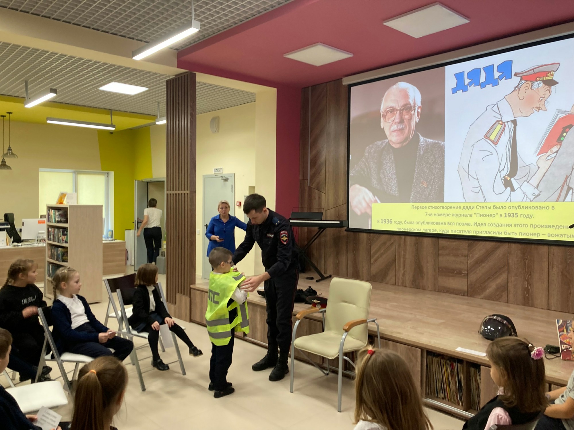 21 ноября для первоклашек Долгодеревенской школы состоялось мероприятие, в котором объединили творчество писателя – юбиляра Сергея Михалкова (170 лет со дня рождения) со знакомством с главными защитниками прав граждан Российской Федерации – полицейскими. Ребята предварительно прочли поэму "Дядя Степа", а в библиотеке встретились с современным полицейским – лейтенантом полиции, инспектором по делам несовершеннолетних Максимом Черепановым. Максим Юрьевич рассказал ребятам, о своей любимой профессии, ответил на все их вопросы, рассказал об инструментах полицейского, необходимых в работе. Все желающие примерили бронежилет, шлем, подержали кобуру (без оружия!). И главное узнали, что основная цель работы и Дяди Степы – милиционера, и каждого российского полицейского – это защита и охрана прав каждого ребенка нашей страны.